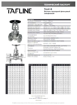 Клапан запорный сильфонный фланцевый TAFLINE, серия TLL41-B, Ду400 Ру16