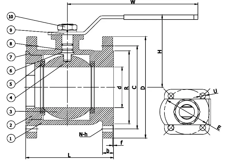 | Диаметр | d | L | D | C | R | b | f | N | h | E | U | W | H |