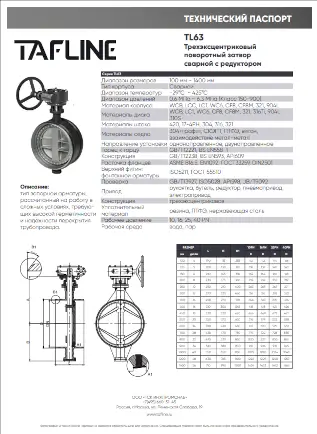 Затвор дисковый поворотный трехэксцентриковый Tafline TL63 под приварку, с редуктором, Ду700 Ру25